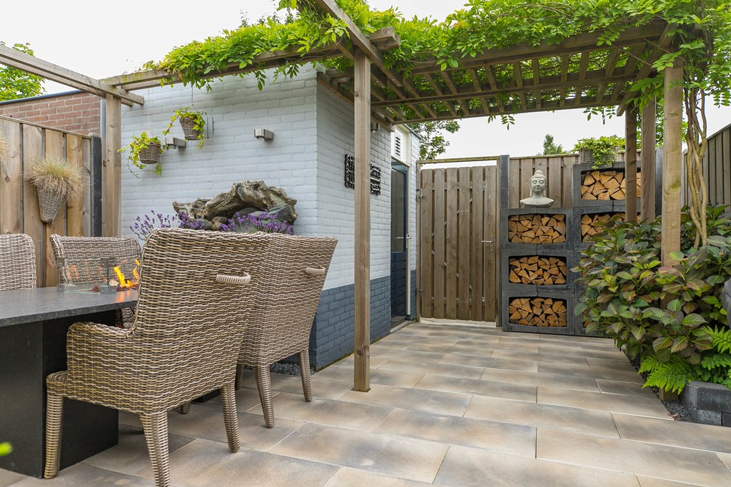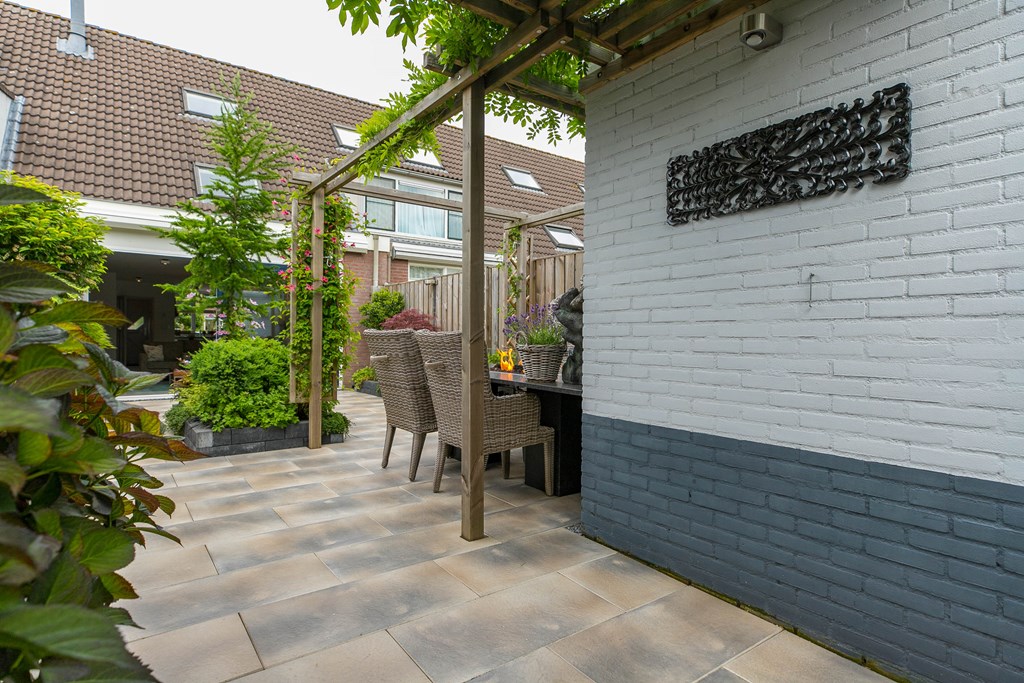De achtertuin is gelegen op het zuiden en in 2015 geheel onder handen genomen. Er zijn sfeervolle borders gerealiseerd waarin een diversiteit aan groen aanwezig is. De ligging van de tuin op het zuiden maakt dat er de gehele dag van de zon genoten kan worden. Ideaal voor zon- en groen liefhebbers onder ons. In de tuin is een vrijstaande stenen berging aanwezig voor het opslaan van de tuinspullen en bijvoorbeeld de fietsen. Aan de achterkant van de woning is een grote speeltuin aanwezig. Erg prettig dat kinderen daar kunnen spelen en er geen speeltoestellen in de tuin geplaatst hoeven worden.