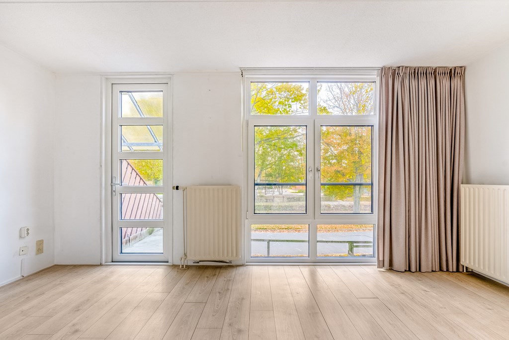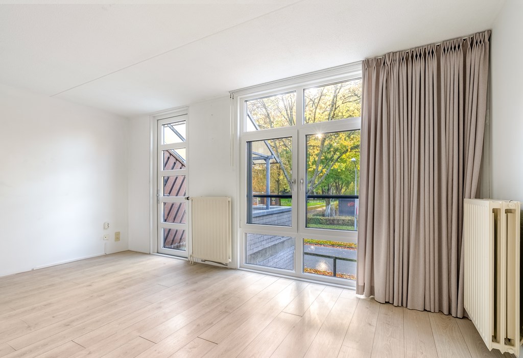 Bij binnenkomst in de woning valt meteen de grote hoeveelheid lichtinval op. De grote raampartijen zorgen dat veel licht de woning kan binnentreden. En het leuke uitzicht maken het nog prettiger. De woonkamer heeft goede afmetingen waardoor voldoende ruimte is voor het plaatsen van een royale zithoek en separate eethoek. Het balkon is vanuit de woonkamer te bereiken, dit is een lekker plek om van het zonnetje en het uitzicht te genieten.