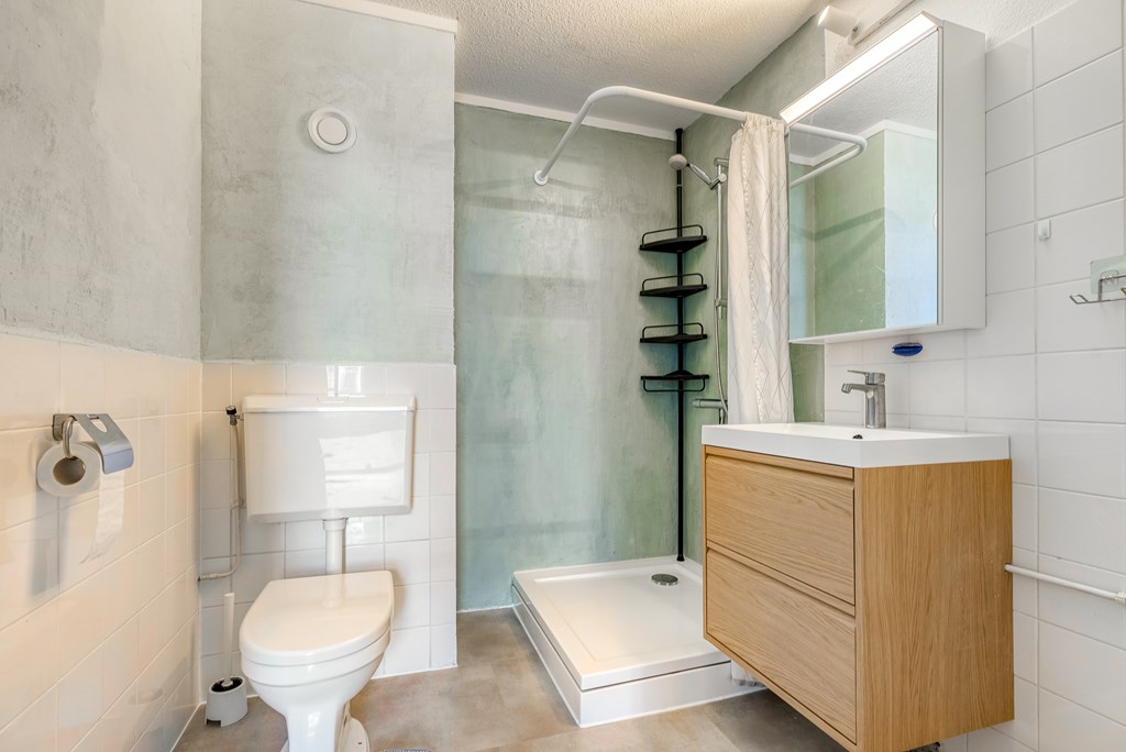 De slaapkamer is ruim genoeg voor het plaatsen van een ruime kledingkast en een tweepersoonsbed. Vanuit de slaapkamer bereiken we de badkamer welke recent opgeknapt is.