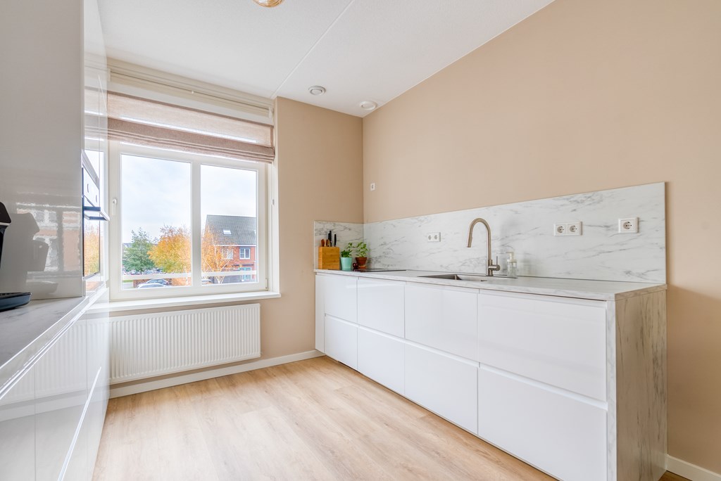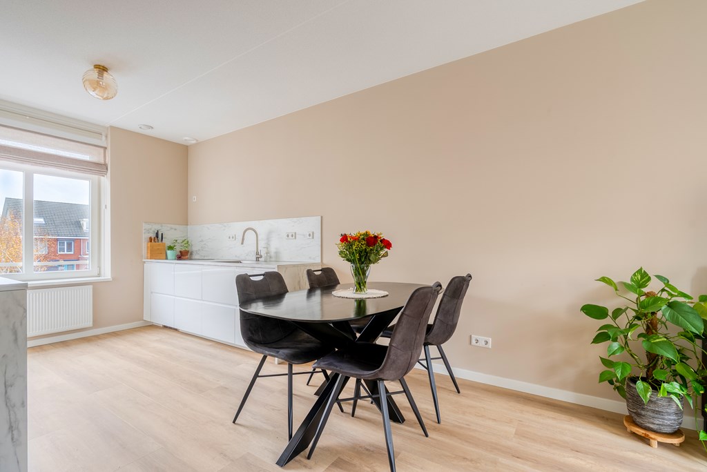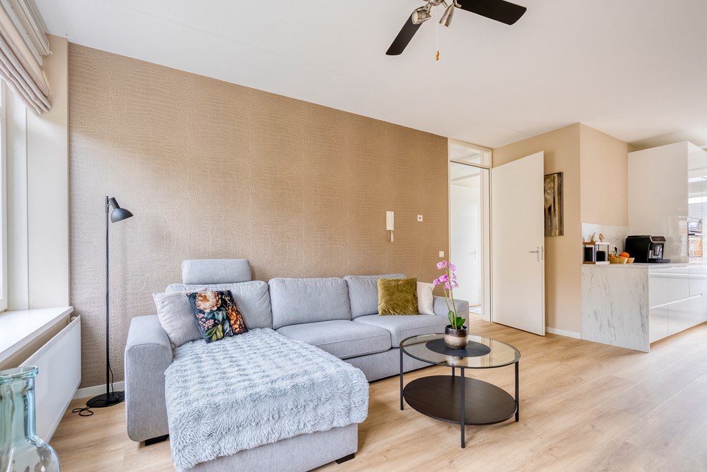 De woonkamer biedt voldoende ruimte voor een gezellige zithoek en een eettafel, perfect voor sociaal samenzijn met vrienden en familie. De vele grote raampartijen zorgen dat er veel licht de woning kan binnentreden en dat je een leuke uitzicht hebt.