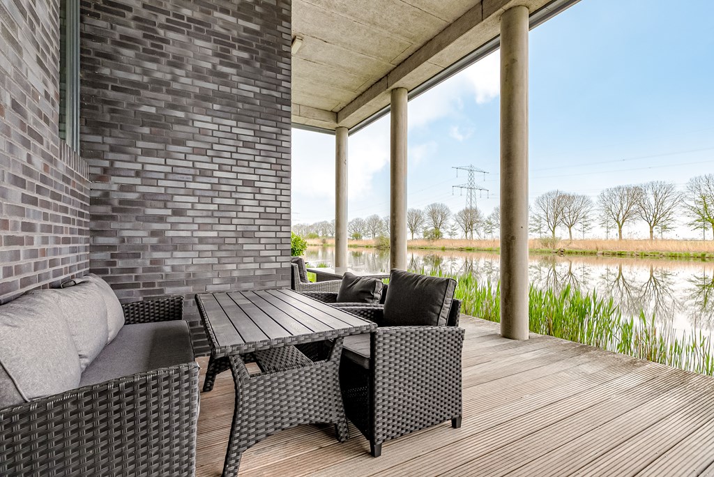 Het appartementencomplex is tevens voorzien van een gezamenlijk terras aan de waterkant. Hier kan de gehele dag door iedereen gebruik van gemaakt worden. Ook ideaal voor het vieren van een verjaardag als het lekker weer is.