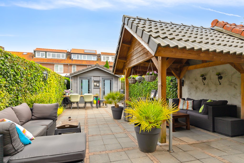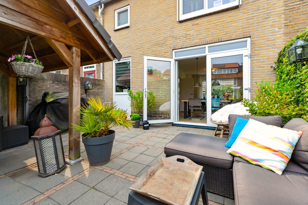 De woning heeft een heerlijke diepe tuin met leuke borders en meerdere leuke zithoeken. De tuin is onderhoudsvriendelijk ingericht. Een pluspunt is de sfeervolle overkapping, waar u heerlijk kunt genieten. Achter in de tuin is een eigen berging aanwezig, handig voor het opslaan van spullen en fietsen.