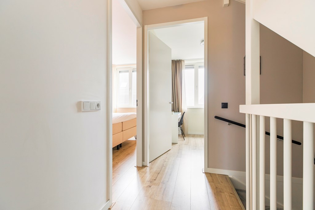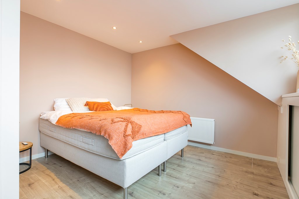 De overloop geeft toegang tot de badkamer en de drie slaapkamers. Er zijn twee slaapkamer aan de achterkant gelegen en een slaapkamer aan de voorkant van de woning. De gehele verdieping is voorzien van een keurige laminaatvloer en stucwerk op de wanden. Met uitzondering van de grootste slaapkamer: deze is voorzien van een sfeervol behang. Deze slaapkamers is tevens voorzien van airconditioning.